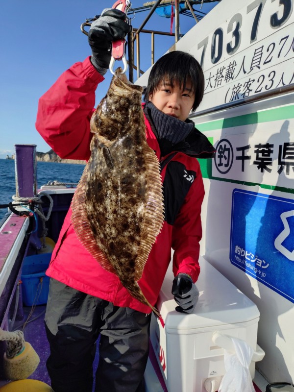 日付:1月30日 魚種:ヒラメ サイズ:2、6㎏〜0、9kg