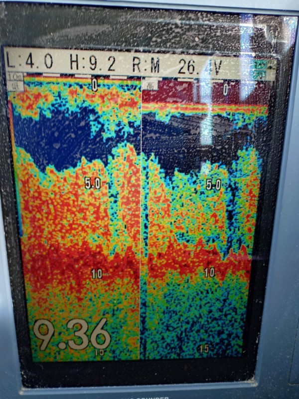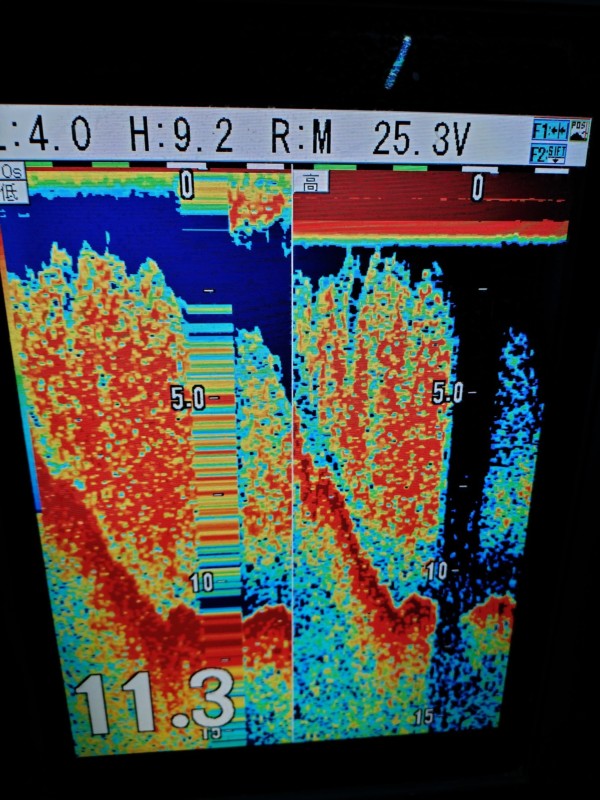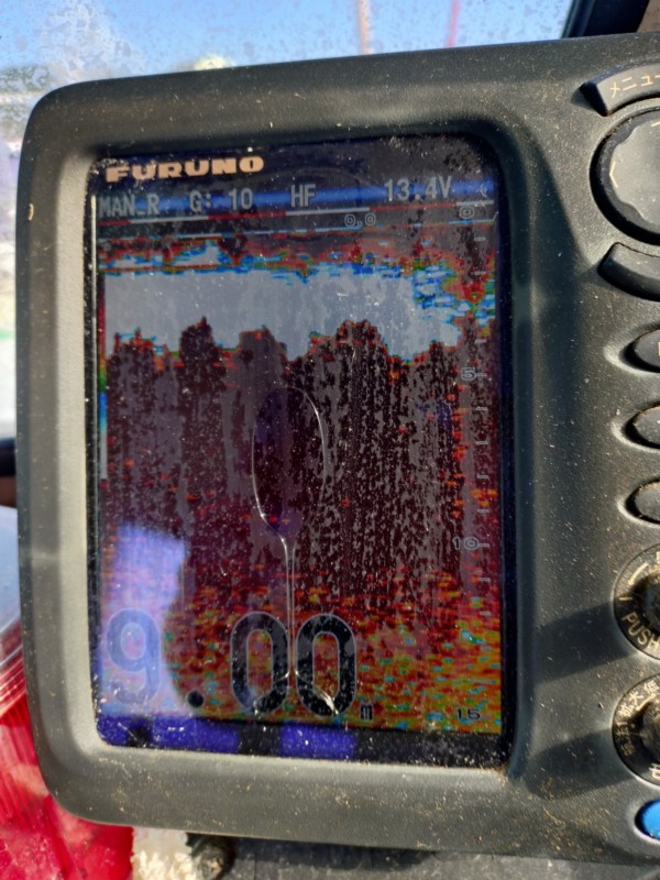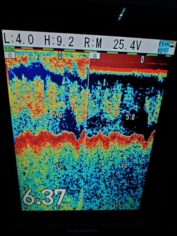今日も朝から岩和田港沖でアジ釣り、アジの反応非常に濃くあり、小サバ混じりで入れ喰い。お土産にもなりました。ヒラメ狙いに切り換えて、岩和田港沖から潮色良くアジの反応非常に濃くあり、朝イチから4~5kgサイズが水面ハリス切れ、他バラシありで、3枚上がっただけで苦戦。中盤はだんだん水温下がり潮色濁り岩和田東沖に移動してみたが、水温下がり、潮色濁り、アタリ無く、岩和田港沖まで戻り、アジの反応は非常に濃くあるがアタリ無く大苦戦。後半はあっちこっち移動しながら1枚増えただけでした。バラシあり、水面ハリス切れ1枚、ハリス切れ2本。今後も大物大釣りチャンスです。
