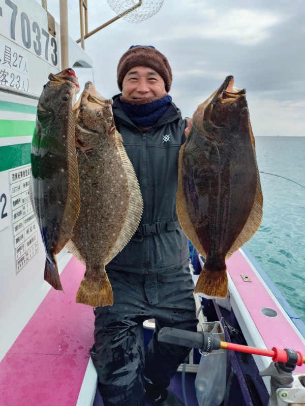 ヒラメ:3.7~1.2kgが3~1枚、船中17枚 | ||