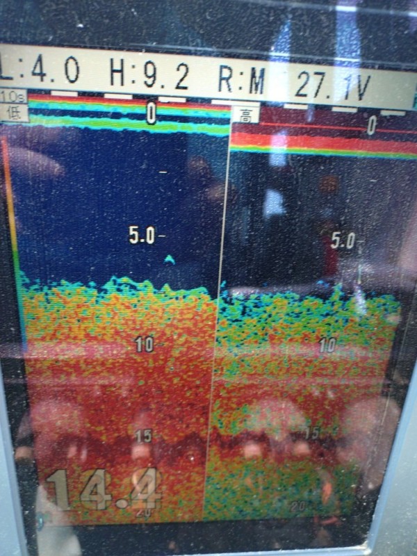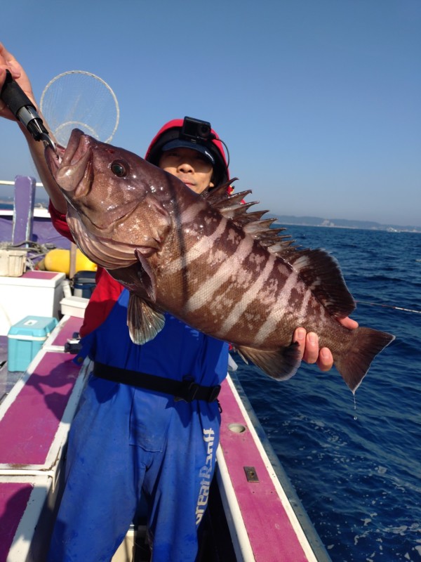 今日は朝から部原沖でヒラメ狙い、イワシの反応非常に濃くありましたが潮全く流れず、風も無く、アタリはありましたがバラシで苦戦。深場にイワシの反応があるとの事で、勝浦灯台沖の40~60mまで移動して、イワシの反応非常に濃くあり、潮の流れ良く、マハタとハチカサゴがポツポツとアタリがありました。中盤も勝浦灯台沖でイワシ反応非常に濃くあるが、潮の流れ速すぎキツク、潮型も悪くなって来て、喰い渋くなりポツンポツンとアタリがある程度。後半はイワシの反応無くなってしまい、潮の流れも速すぎキツク、潮型も非常に悪くなり、岩和田東沖の浅場に移動して、イワシの反応非常に濃くあるが、底潮冷たく、潮も濁り、ヒラメはソゲが2枚でした。マハタは最大で4.3kgが上がり、1kg前後が中心!ハチカサゴの1kg前後が9匹上がりました!バラシ多数あり、根ズレハリス切れ2本!今後も大物大釣りチャンスです!