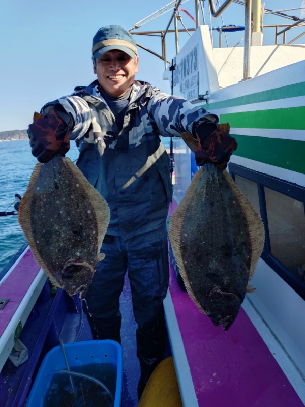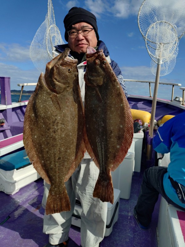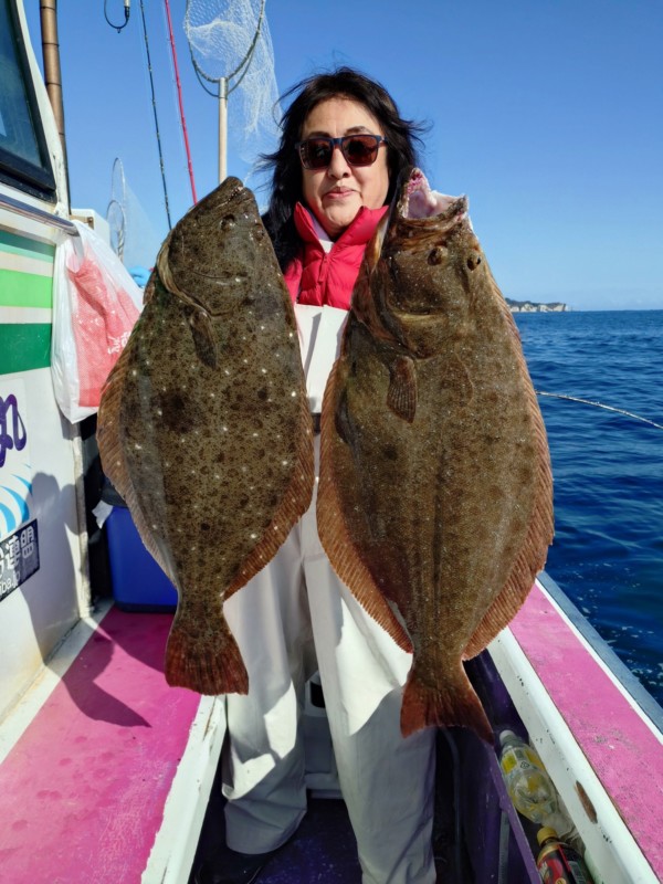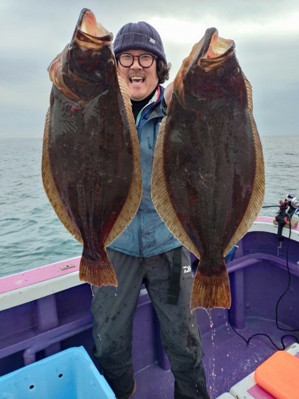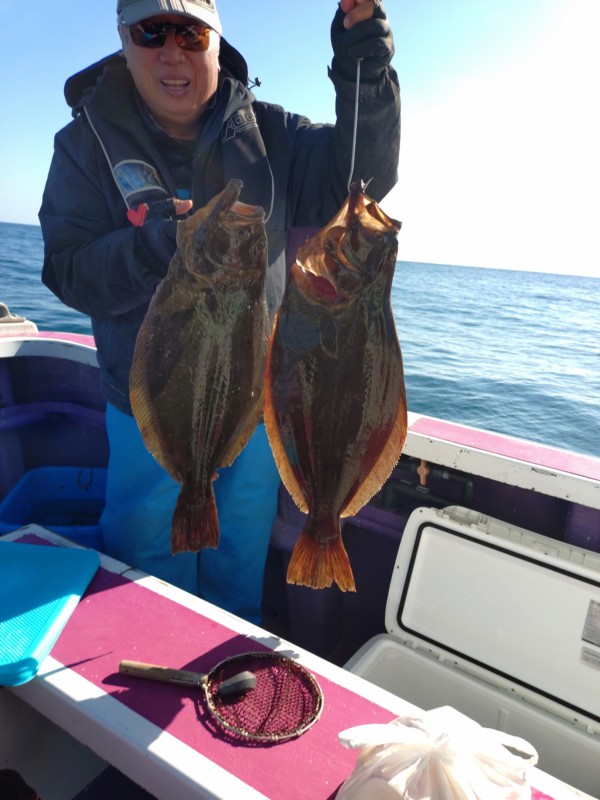 今日も朝から岩和田海水浴場沖でアジ釣り、サメが邪魔したが、ポツポツとカマス、コノシロ、小サバ混じりで釣れて入れ喰いの時もありました。ヒラメ狙いに切り替えて、部原沖からアジの濃くあり、潮の流れ良く、ポツリポツリとアタリがあり、バタバタもありました。中盤も部原沖でやや潮の流れ止まり、ポツリポツリとアタリがありました。後半も部原沖で潮全く流れなくなり、ポツンポツンとアタリがある程度でした。最大で5.1kg、4.8kg、4.4kgが混じり、3~1.5kgが中心!バラシ多数あり、ハリス切れ4本、水面バラシ1枚でした!今後も大物大釣りチャンスです。明日もヒラメで出船します。今のところ空き多数なので良かったら遊びにいらして下さい。ご予約宜しくお願いします。
