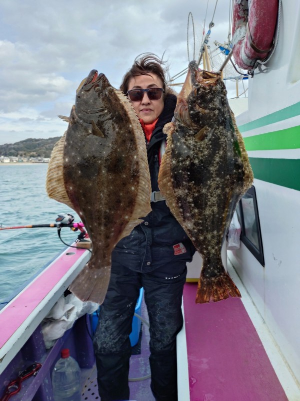 ヒラメ:1.6~0.5kgが1~0枚、船中5枚 | ||